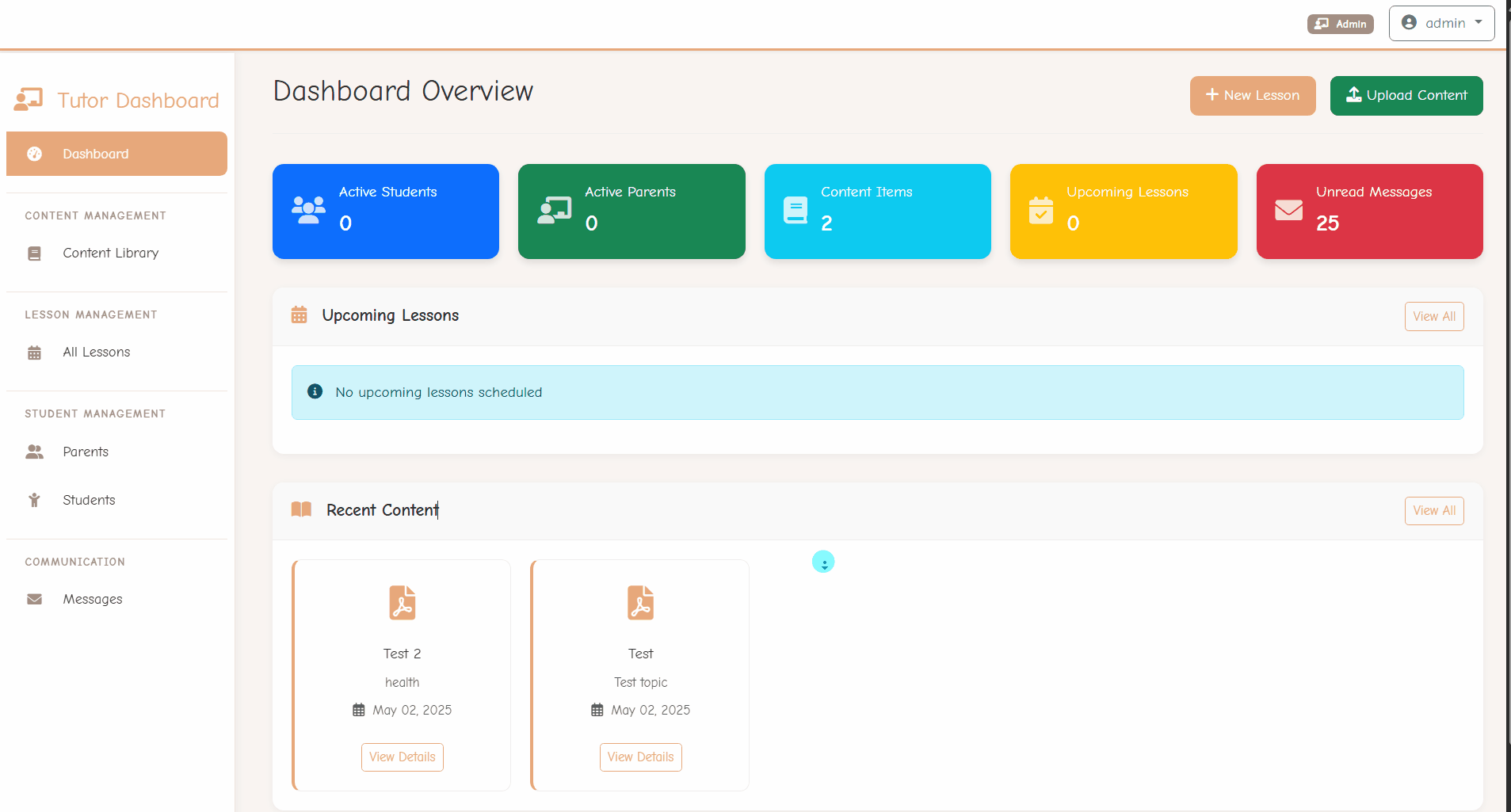 With the Tutor Dashboard, educators can easily set up both live lessons and lesson materials in one place. Tutors can upload PDFs, videos, and images, organize content by topic, and schedule sessions — all without technical complexity.